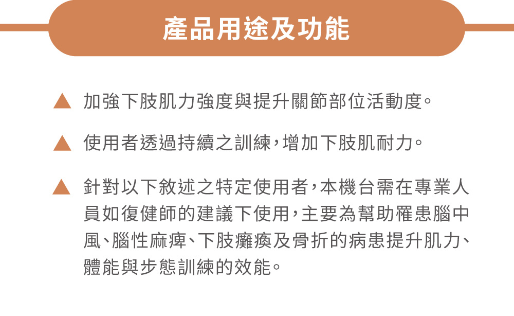 ● 主動功能(néng),使用(yòng)者踩踏踏闆來帶動馬達