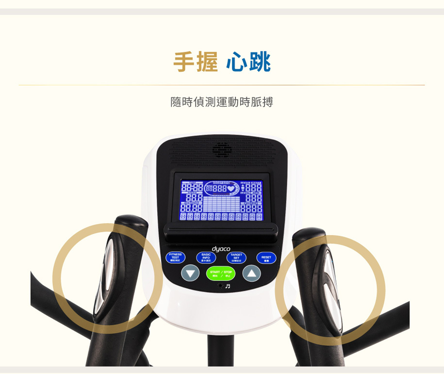 ● 手握心跳把手,隨時偵測運動時脈搏