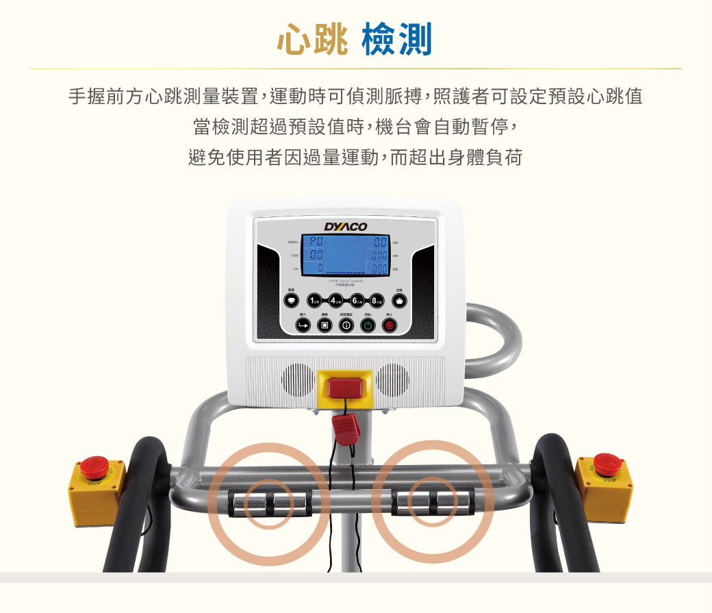 ● 心跳檢測,當檢測超過預設值,機台會自動暫停,避免運動過量。