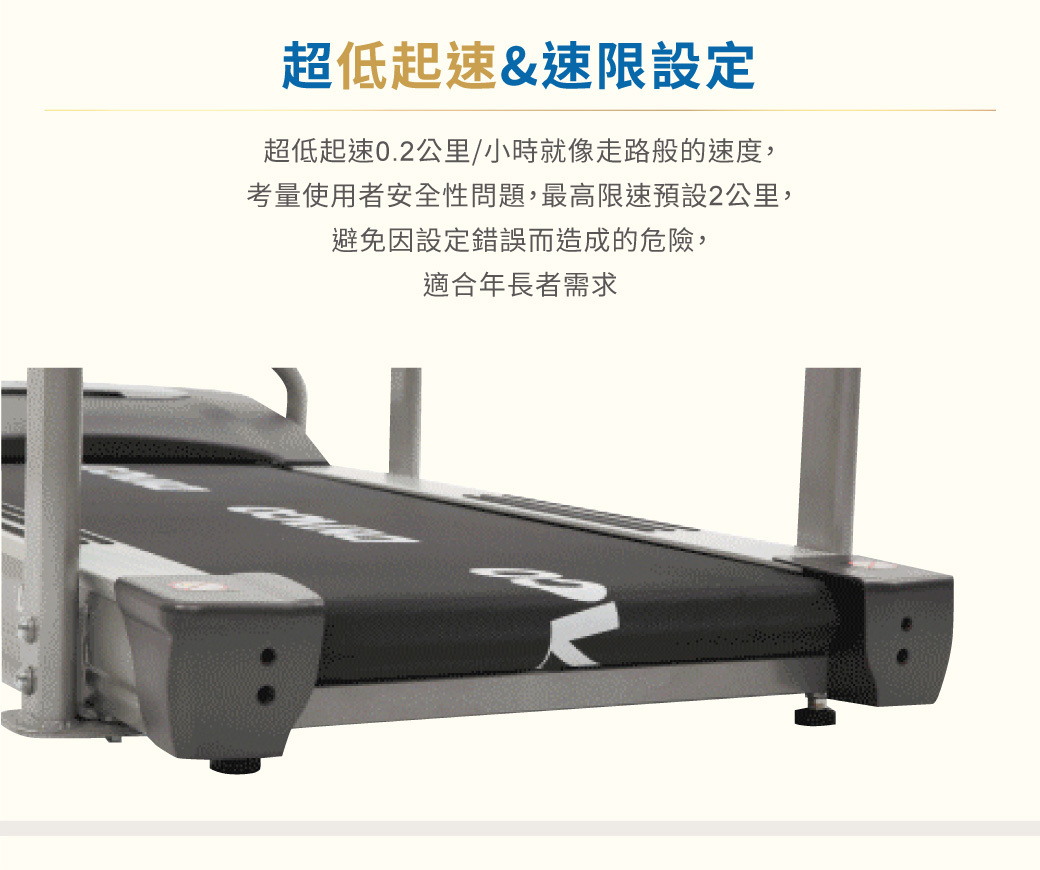 ● 超低起速的慢走功能(néng),最低時速0.2km/hr。